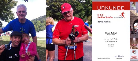 Bild Links 3 Läufergenerationen Opa, Sohn (Ironman Finisher-Roth), Enkelin Bild Mitte Opa beim 12,5km EBM Nordic-Walking Zeit 1:44 Std. Bild Rechts Stadtlauf Ilshofen 5km Zeit 0:37 Std.